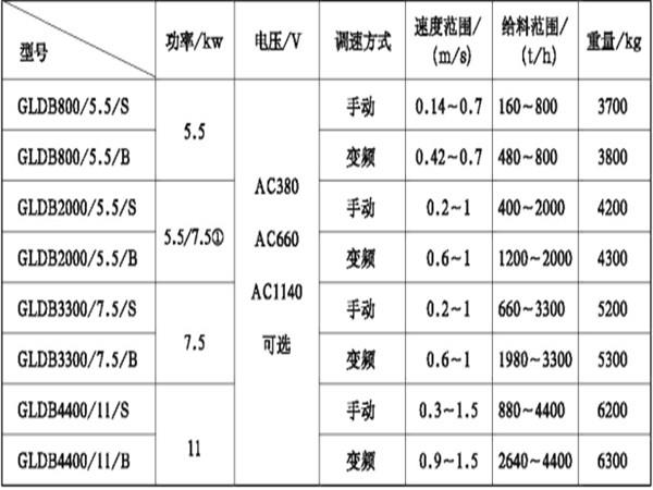 帶式(甲帶)給料機技術(shù)參數(shù):