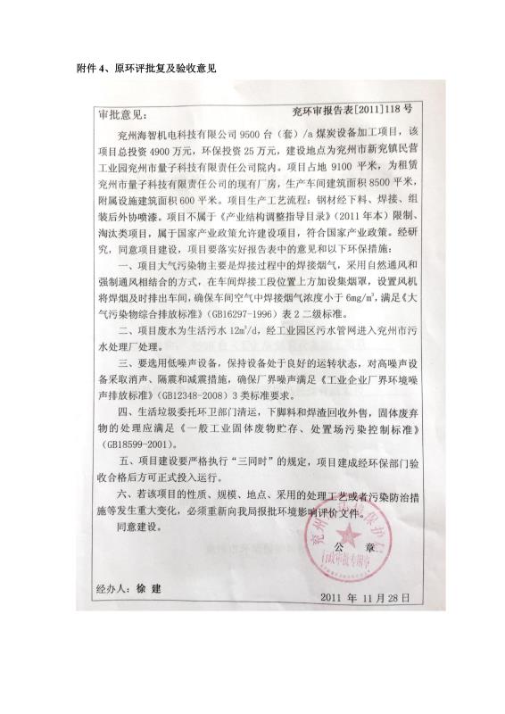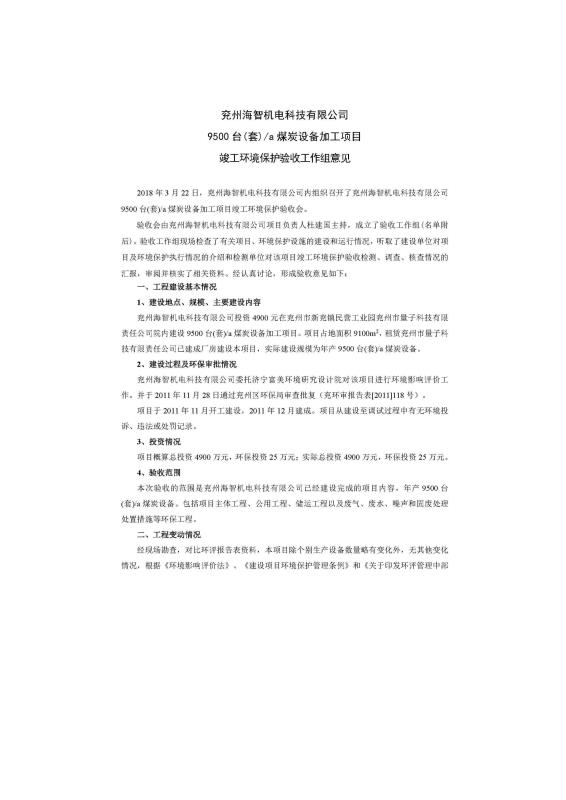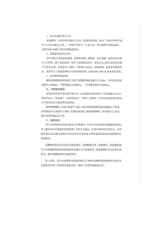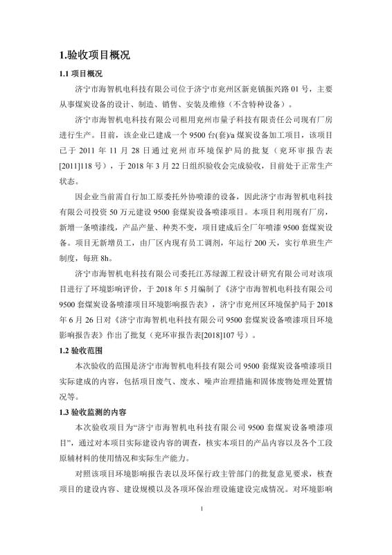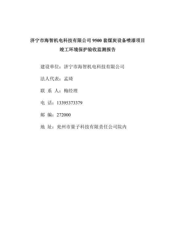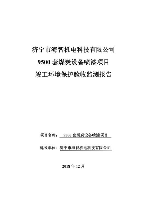 > 遼寧9500套煤炭設(shè)備噴漆項(xiàng)目竣工環(huán)境保護(hù)驗(yàn)收監(jiān)測報(bào)告