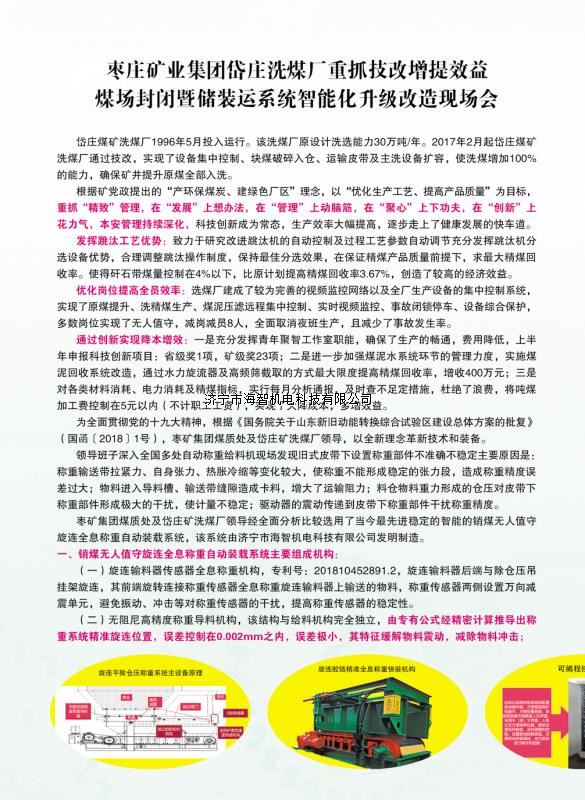 本產(chǎn)品一經(jīng)推出即獲得各大設計院及用戶的一致好評,率先在棗礦集團岱莊煤礦取得成功應用,2018年9月受邀參加了《棗礦集團煤場封閉暨儲裝運系統(tǒng)智能化升級改造現(xiàn)場會》,智能裝車系統(tǒng)得到了充分肯定!我司憑借雄厚的加工制造實力及過硬的創(chuàng)新技術能力,勢必為運輸稱重系統(tǒng)、快速計量裝車系統(tǒng)帶來又一次的技術創(chuàng)新變革。
