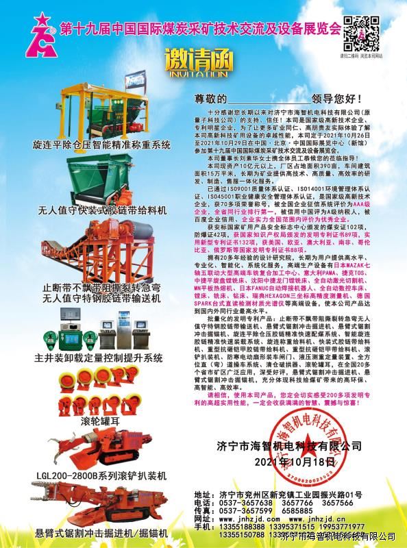 邀請函-第十九屆中國國際煤炭采礦技術(shù)交流及設備展覽會