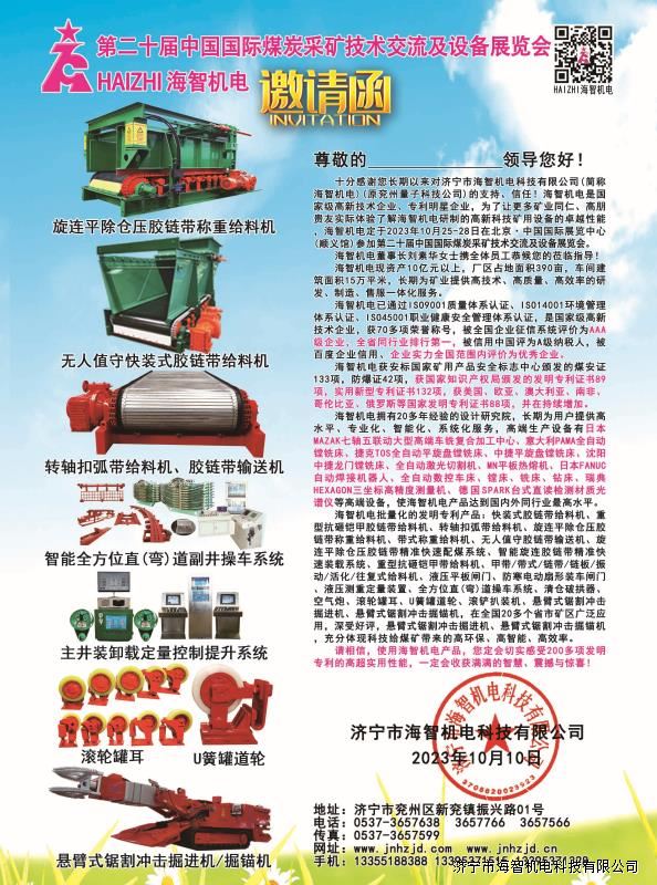 > 邀請(qǐng)函-第二十屆中國國際煤炭采礦技術(shù)交流及設(shè)備展覽會(huì)2023.10.25-28